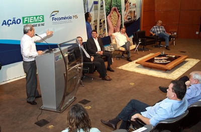 O governador André Puccinelli destacou a relação positiva de seu governo com a União ao saudar o ex-presidente Luis Inácio Lula da Silva, durante o encontro do líder político nacional com o setor produtivo de Mato Grosso do Sul, na manhã desta quarta-feira (13), organizado pelas federações da indústria (Fiems) e do comércio (Fecomércio).