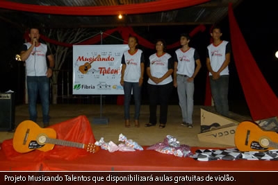 Mais de 70 jovens participaram do encerramento do projeto Musicando Talentos, realizado pela Casa da Cultura em parceria com a Fribria, que tem como objetivo fomentar a cultura por meio de aulas de violão. O projeto é realizado no bairro Jupiá, em Três Lagoas. “Diante da solicitação deles, a Casa da Cultura e a Associação de Morados do Jupiá, inscreveu o projeto e a Fibria atendeu este pedido da comunidade”, explica a coordenadora do projeto, Nilva Barrozo.