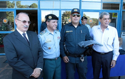 O governador André Puccinelli entregou nesta sexta-feira (27), no Comando Geral da Polícia Militar de Mato Grosso do Sul (PMMS), 12.687 fardamentos de instrução (fardas azuis), 6.705 coturnos e 4.333 cintos de guarnição com coldre, além de boinas e gorros, para os policiais.