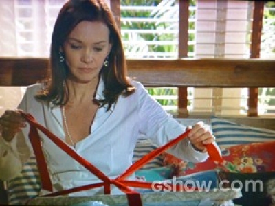 Cheia de raiva, Helena põe mais um item na caixa: o programa da apresentação de Laerte queLuiza (Bruna Marquezine) trouxe de Viena. Por que será que Helena faz questão de ter todas essas lembranças?