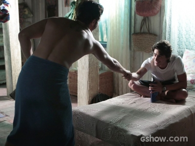 William (Thiago Rodrigues) e Rafa (Vinicius Tardio) nunca se bicaram, né? Mas como o mundo dá voltas e muita coisa mudou, os dois aproveitam que estão abrigados na casa da Vó Tita (Analu Prestes) para se entenderem de uma vez por todas. O irmão de Marlon (Rodrigo Simas) sai do banho e não tem nada para vestir. Percebendo a situação, o namorado de Fátima (Yanna Lavigne) oferece uma roupa emprestada.
