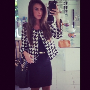 Pelo menos era essa a ideia que transmitia o look que a apresentadora usava quando fez seu "Selfie": "Boa tarde, flor da tarde", escreveu ela na legenda da foto, que foi postada em seu seu perfil do Instagram, e na qual apareceia de vestido, casaqueto e bolsa em punho.
