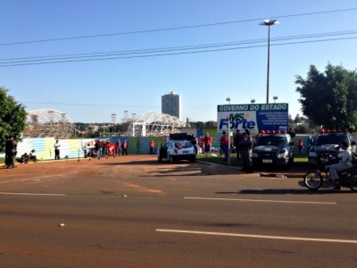 Polícia acompanha protesto em canteiro de obras em Campo Grande