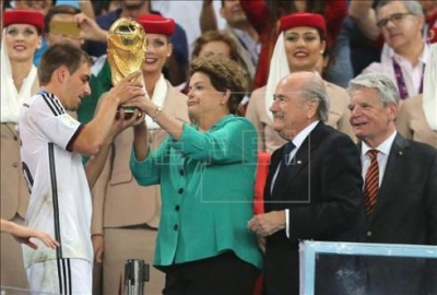 Pouco antes do começo da partida final entre Argentina e Alemanha, a presidente entregou simbolicamente a Copa ao presidente russo, Vladimir Putin, em cerimônia com a presença do presidente da Fifa, Joseph Blatter.