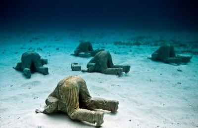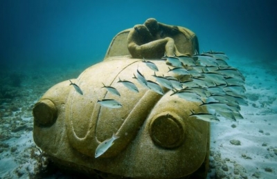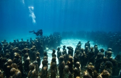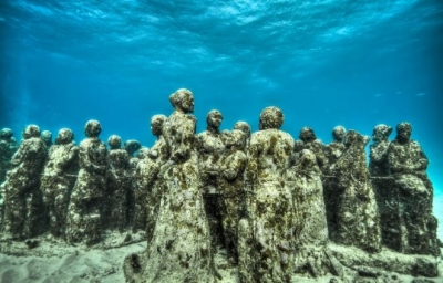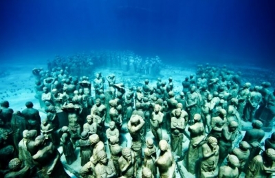 Quem vê as praias paradisíacas de Cancun, no México, não imagina que embaixo daquele mar esverdeado existe o maior museu submerso do mundo, segundo seus criadores. Com 400 esculturas feitas de cimento, o "Cancun Underwater Museum" fica a cerca de 10 metros de profundidade e foi projetado pelo escultor Jason DeCaires Taylor.