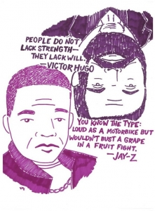 Ilustrações aproximam rappers e escritores do século 19 com citações parecidas