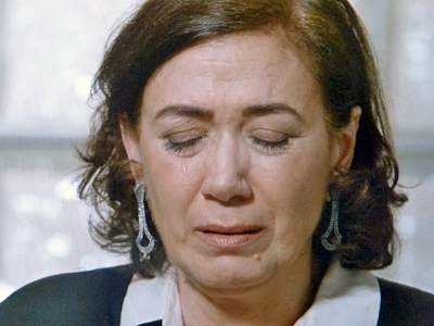 Enquanto espera o elevador, ela olha em volta e percebe que está só. Sem que ninguém veja, Marta se dirige até o vão da escada e chora, deixando toda a tristeza vir à tona.