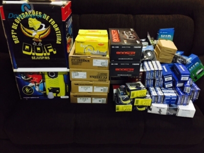 O DOF (Departamento de Operações de Fronteira), apreendeu mercadorias em um Ford Fusion, de cor preta, placa de Dourados, conduzido por M.F.B de 25 anos de idade. Por volta das 18h40, em um bloqueio policial realizado em uma estrada na região de Mundo Novo, os agentes deram ordem de parada para o veículo e, na vistoria foi constatado que o veículo transportava diversas mercadorias, entre elas: 01 m´quina de alta pressão, 04 rádios transceptores, 02 aparelhos de som automotivo,07 módulos de lâmpadas automotivas.