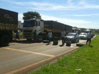 (Bloqueio dos caminhoneiros em Dourados, nesta quinta-feira - Foto: Liziane Zarpelon/ TV Morena)