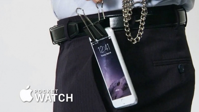 O novo produto não passa de um iPhone preso a uma corrente por um clipe de papel. Com isso, o produto reproduziria, de maneira tecnológica, os tradicionais relógios de bolso.