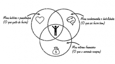 Outro ponto importante: será que você está fazendo o que, de fato, nasceu para fazer? Avalie se o que faz profissionalmente agora está na intersecção de três universos: aquilo que você gosta tanto de fazer que até parece um hobby; aquilo que você realmente tem conhecimento e habilidades para realizar muito bem; e aquilo que o mercado remunera razoavelmente bem.