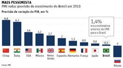 A expectativa é que o Brasil no crescimento mundial do próximo ano: "uma retomada nos mercados emergentes deve guiar a recuperação em 2016, primariamente refletindo uma diminuição parcial dos contratempos à demanda e produção domésticos em algumas economias, incluindo Brasil e Rússia", diz o fundo.