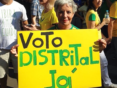 Protestos contra o governo dão impulso a grupos que lutam pela adoção do voto distrital no Brasil. Em meio aos cartazes de 'Fora Dilma', suas bandeiras já se fazem ver