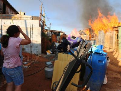 Imagens do Globocop mostraram diversos focos de incêndio, que se alastra pelo terreno. A fumaça pode ser vista de longe e o Corpo de Bombeiros está no local. Alguns moradores retiraram seus móveis, como berço e cama.