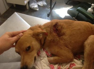 O dono do cachorro provocou vários cortes no animal com o uso de um facão