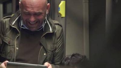 Na ação realizada em um trem na Bélgica, um homem assiste a algo em seu tablet e começa a soltar uma gargalhada que chama a atenção de todos ao redor. A risada logo se espalha entre os demais passageiros, mesmo sem que ninguém saiba o que de fato a motivou.