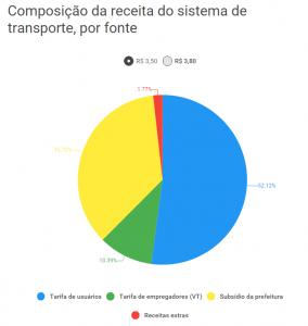 Segundo a SPTrans, órgão da prefeitura que gerencia o sistema de ônibus da capital paulista, o valor inicial da passagem cobre 52,1% das receitas com transporte, enquanto outros 10,3% são ganhos por Vale Transporte dados por empresas — também relacionado ao preço praticado.