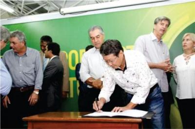 O prefeito de Vicentina, Helio Sato (PMDB) participou em Campo Grande, juntamente outros 31 gestores municipais, do ato de assinatura que garante a liberação de recursos visando amenizar os estragos causados pelos temporais que caíram em Mato Grosso do Sul nos últimos dias. Hélio Sato assinou o convênio com o Governo do Estado, prevendo a liberação de R$ 62.800,00 para aquisição de óleo diesel.