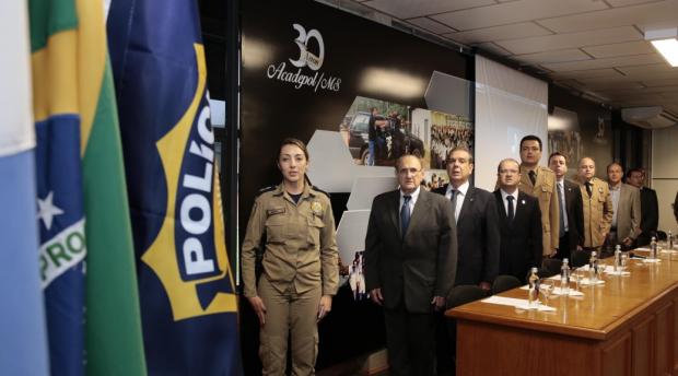 Representando o governador Reinaldo Azambuja, o secretário de Estado de Justiça e Segurança Pública, José Carlos Barbosa, participou na tarde desta segunda-feira (16), no auditório da Academia de Polícia Civil Delegado Júlio César da Fonte Nogueira (Acadepol), em Campo Grande, da posse do novo superintendente da Polícia Rodoviária Federal (PRF), inspetor Luiz Alexandre Gomes da Silva.