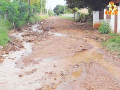Em consequência das chuvas, várias valetas se formaram ao longo da rua. Por conta dos buracos, alguns motoristas tiveram que improvisar para facilitar a entrada e saída de veículos das garagens. Maria Rosa Ferante de Lima, 70 anos, explicou que desde o ano passado, quando a máquina nivelou o local, a situação vem ficando mais caótica e com as chuvas recentes uma valeta se formou na entrada da casa dela, dificultando a entrada e saída do carro. “Toda vez que vamos sair meu marido tem que pegar e tampar a valeta com terra, mas na próxima chuva lá está aquele buraco gigante de novo”, reclama a aposentada, que mora no local há 25 anos.