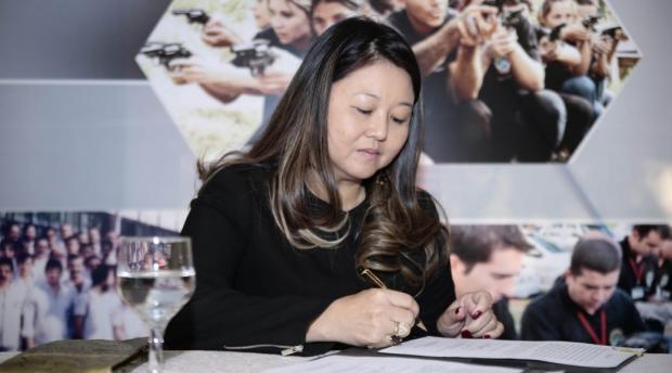 O secretário de Estado de Justiça e Segurança Pública José Carlos Barbosa e o delegado-geral da Polícia Civil e presidente do Conselho Superior da categoria, Marcelo Vargas, empossaram nesta quarta-feira (03) a nova Coordenadora Geral de Perícias do Estado (CGP), Glória Setsuko Suzuki. A cerimônia de transmissão de cargo foi realizada na Academia da Polícia Civil Júlio Cesar da Fonte Nogueira (Acadepol).