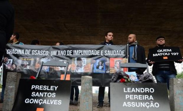 Neste sábado, 13 de agosto, parentes e amigos completam um ano sem as 19 vítimas da chacina de Osasco e Barueri, cidades da Grande São Paulo. Até o momento, somente quatro réus, sendo três policiais militares e um guarda-civil, foram denunciados à Justiça Estadual por homicídio doloso. Eles estão presos e aguardam decisão se serão julgados por um júri popular ou se o processo será arquivado. Todos negam a autoria dos crimes.