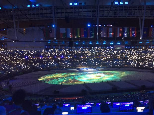 A cerimônia de encerramento acontece sob chuva no Maracanã, com duração de três horas, a partir das 20h