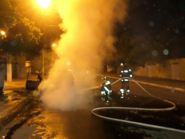Por volta das 19h, bombeiros foram acionados para atenderem ocorrência no cruzamento da Rua Colombo com a Major Gama. Quando chegaram ao local, viram um Chevrolet Monza em chamas.