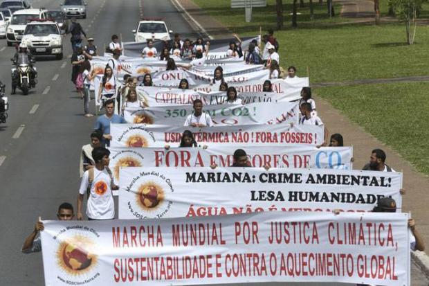 Estudantes do ensino fundamental e médio de escolas do Distrito Federal participaram da 6ª Marcha Mundial do Clima, em Brasília. Cerca de 50 alunos desceram a Esplanada dos Ministérios carregando faixas com frases pedindo medidas para conter as mudanças climáticas. “Reunidos podemos fazer a diferença”, comenta Emily Torres, 13 anos.