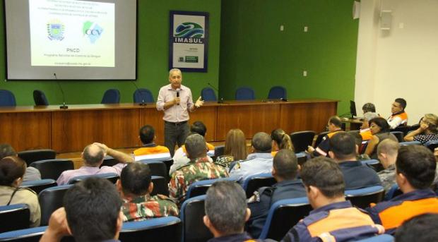 A reunião para multiplicação de ações de combate às doenças transmitidas pelos mosquitos Aedes aegypti e Aedes albopictus foi realizada no auditório do Instituto de Meio Ambiente de Mato Grosso do Sul (Imasul), no Parque dos Poderes.