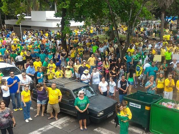 (Foto: Bárbara Almeida/G1 - Manifestantes em Uberlândia-MG)