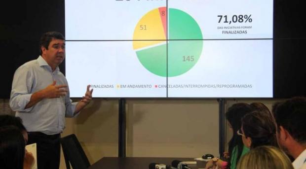Em números absolutos significa que 145 das 204 iniciativas previstas foram entregues para a sociedade. Do percentual de ações pendentes, 51 estão em andamento e 8 foram reprogramadas ou canceladas por falta de recursos financeiros.