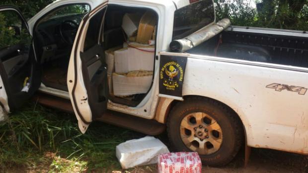 Carga de 660 quilos de maconha foi apreendida em caminhonete S10 roubada, durante perseguição policial, ontem (8), em estrada sem pavimentação de Itaquiraí.