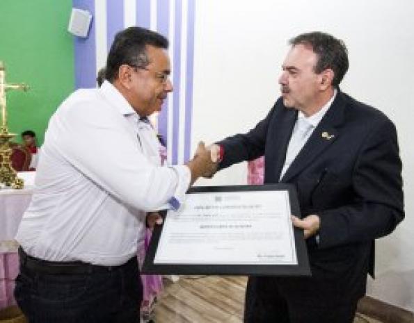 Um dos homenageados com a Rosa de Ouro foi o deputado estadual Paulo Siufi que, na oportunidade, aproveitou para entregar a segunda homenagem da noite ao prefeito de Corumbá. Ruiter recebeu a Moção de Congratulação da Assembleia Legislativa por ter declarado a catedral Nossa Senhora da Candelária como patrimônio histórico e cultural do município de Corumbá, devido ao seu valor histórico. “Esta homenagem foi aprovada com unanimidade pelos deputados, o trabalho que o Ruiter tem desempenhado é notável”, comemorou Siufi.