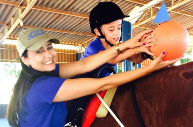 “O Centro de Equoterapia é fundamental para o desenvolvimento das crianças da Apae, que careciam de atendimento especializado e atividades complementares para diminuir as habilidades deficitárias, que o ensino regular não supre. Utilizamos técnicas didáticas e psicopedagógicas para estimular a motricidade e amenizar o déficit de atenção. São atividades integradas com os cavalos, argolas, cores, e claro que a família também é fundamental nesse apoio, tanto que ela é um agente colaborador da terapia”, explica a psicóloga do centro, Cristina Pires.