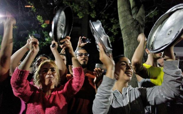 Nesta madrugada, os manifestantes fizeram panelaço na frente do Congresso, sem conflitos com policiais.