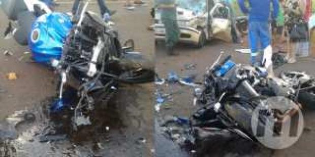 Um casal seguia em uma motocicleta na rodovia quando colidiu entre a porta e a roda dianteira de um veiculo Gol. As causas do acidente estão sendo investigadas.