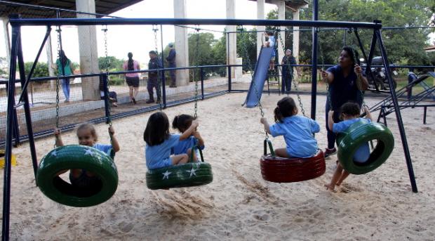 Muito colorido e formado por escaladores, triciclos, centopeias, carrinhos e balanços, incluindo um adaptado para crianças com paralisia cerebral, o novo parque, e a horta revitalizada, foram entregues nessa quarta-feira (11.4).