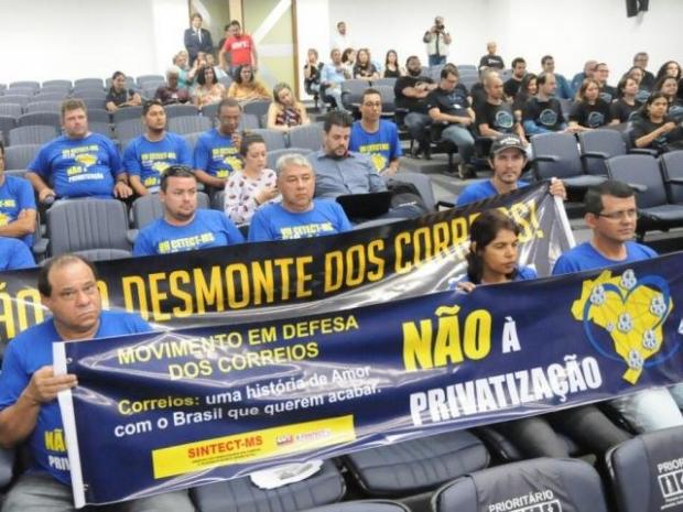 As privatizações de serviços públicos considerados essenciais são tema de audiência pública, realizada na tarde desta quinta-feira (12). Cerca de 100 pessoas acompanham o evento no plenário da ALMS (Assembleia Legislativa de Mato Grosso do Sul), em Campo Grande.