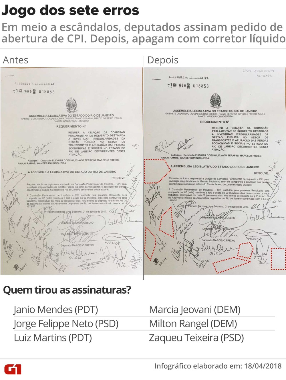 Recentemente, a Justiça derrubou este método. Na CPI dos Transportes, iniciada em 2018, o pedido obteve assinaturas suficientes, mas seis deputados voltaram atrás e rasuraram seus nomes. O Tribunal de Justiça, no entanto, entendeu que a retirada de assinaturas era ilegal. O G1 pediu posicionamento aos seis parlamentares em questão, mas obteve resposta apenas de um: Zaqueu Teixeira (PSD).