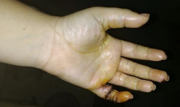 Foto: Corte foi mais profundo no dedo mínimo que precisou de cirurgia (Luis Gustavo/Jornal da Nova)