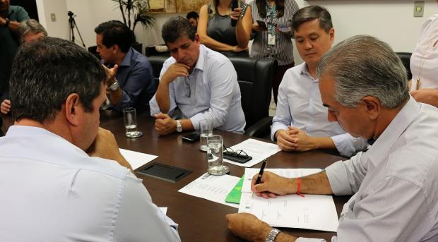 Nesta terça-feira (24.4), o governador Reinaldo Azambuja e representantes do Serviço Nacional de Aprendizagem Rural no Estado (Senar-MS) e da Federação da Agricultura e Pecuária de MS (Famasul) firmaram convênio que garante a realização do programa nas escolas da Rede Estadual.
