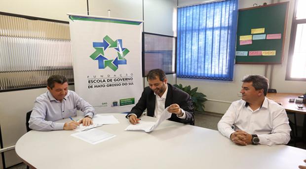 Para consolidar um trabalho que vem sendo realizado em parceria pelas instituições para beneficiar os servidores públicos estaduais, a Fundação Escola de Governo de MS e a Universidade Estadual de Mato Grosso do Sul assinaram na manhã desta sexta-feira (27.4), convênio que garante intercâmbio e cooperação na realização de pesquisas, ensino, extensão, troca de informações, atividades culturais, consultoria, desenvolvimento e prestação de serviços integrados.