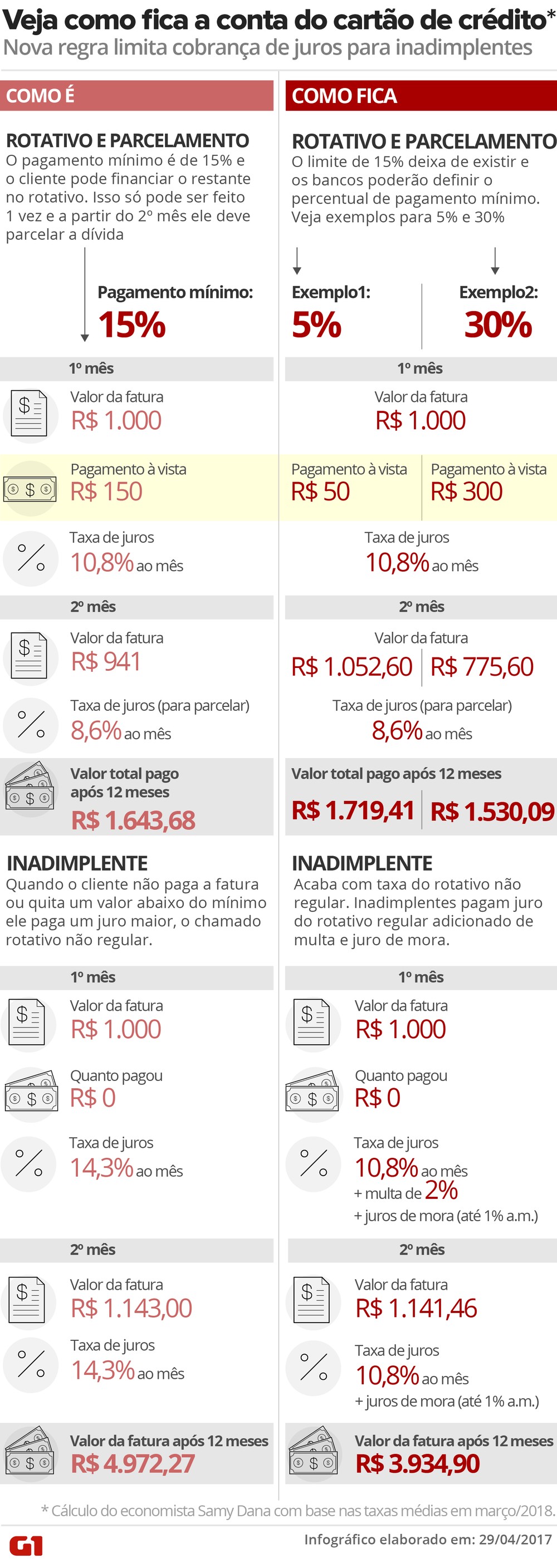 Veja simulações de como ficará a conta do cartão de crédito com a nova regra
