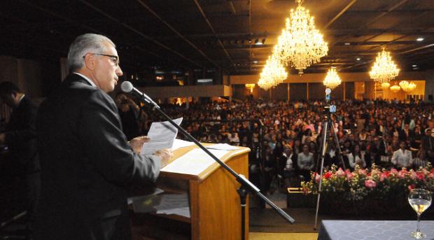 Foto: Reinaldo Azambuja na 1ª Conferência da Mulher Advogada, realizada nesta quinta-feira (17.5) em Campo Grande.(Edemir Rodrigues)