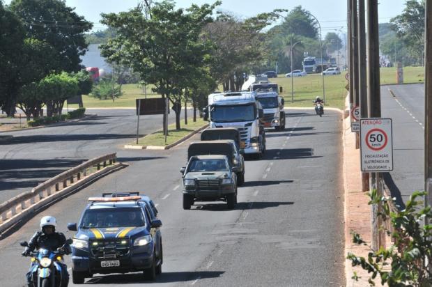 Foto: PRF e Exército durante escolta de combustível ontem. (Valdenir Rezende)