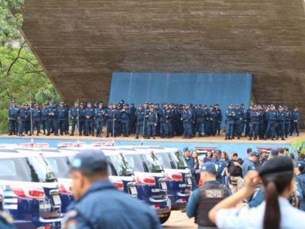 PMs durante cerimônia na Praça do Rádio Clube, em Campo Grande (Foto: André Bittar/Arquivo)