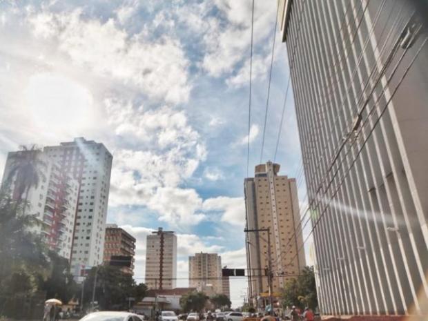 Sol entre nuvens, na região central de Campo Grande. Registro das concretudes de nossa Capital. Frio mesmo só mesmo a partir de segunda. (Foto: Fernando Antunes)