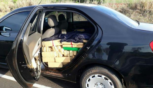Segundo informações da PRF, os policiais abordaram um GM/Cobalt, com placas de Campo Grande, conduzido pelo traficante. O veículo estava carregado com grande quantidade de tabletes de maconha, no porta malas e no banco traseiro.