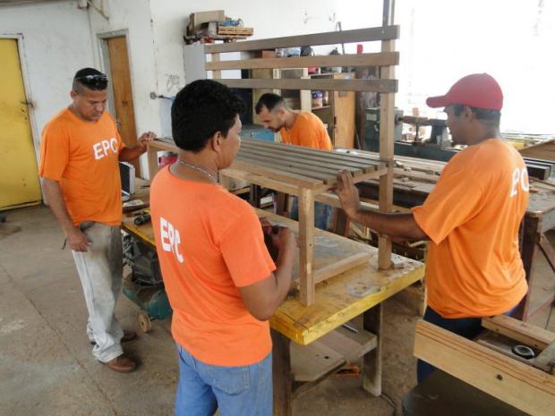 Dentro do setor de marcenaria no EPC existe utilização de madeira de demolição na confecção de mobílias e de trabalhos artesanais. Outro produto reaproveitado são os ‘pallets’, tipo de estrado de madeira, utilizados na fabricação de caixas térmicas, camas e casas para cães. Todos os produtos podem ser adquiridos pela população em geral, encomendados ao Setor de Trabalho do estabelecimento prisional.